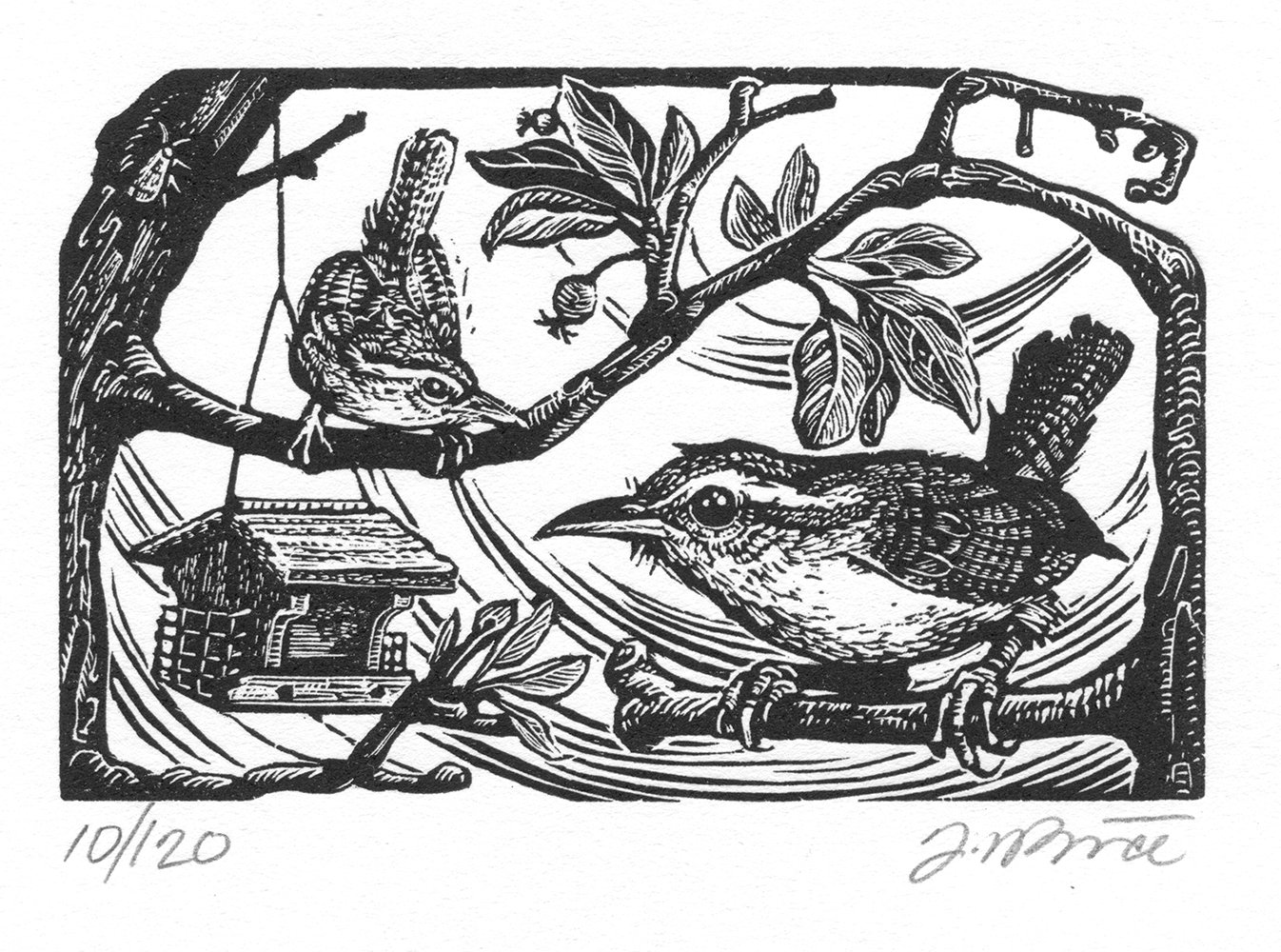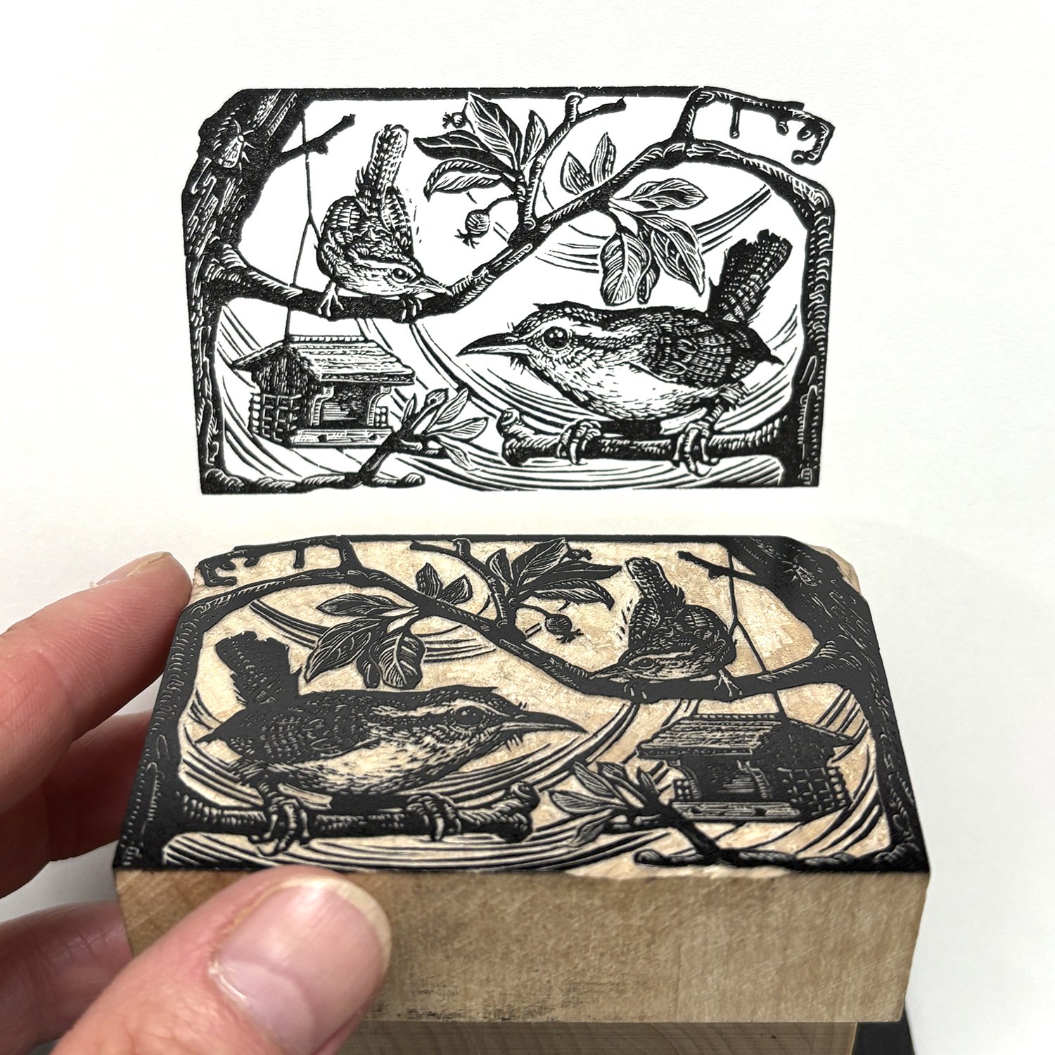 An original hand engraved image on maple end grain wood, printed on Mohawk Superfine Smooth paper.